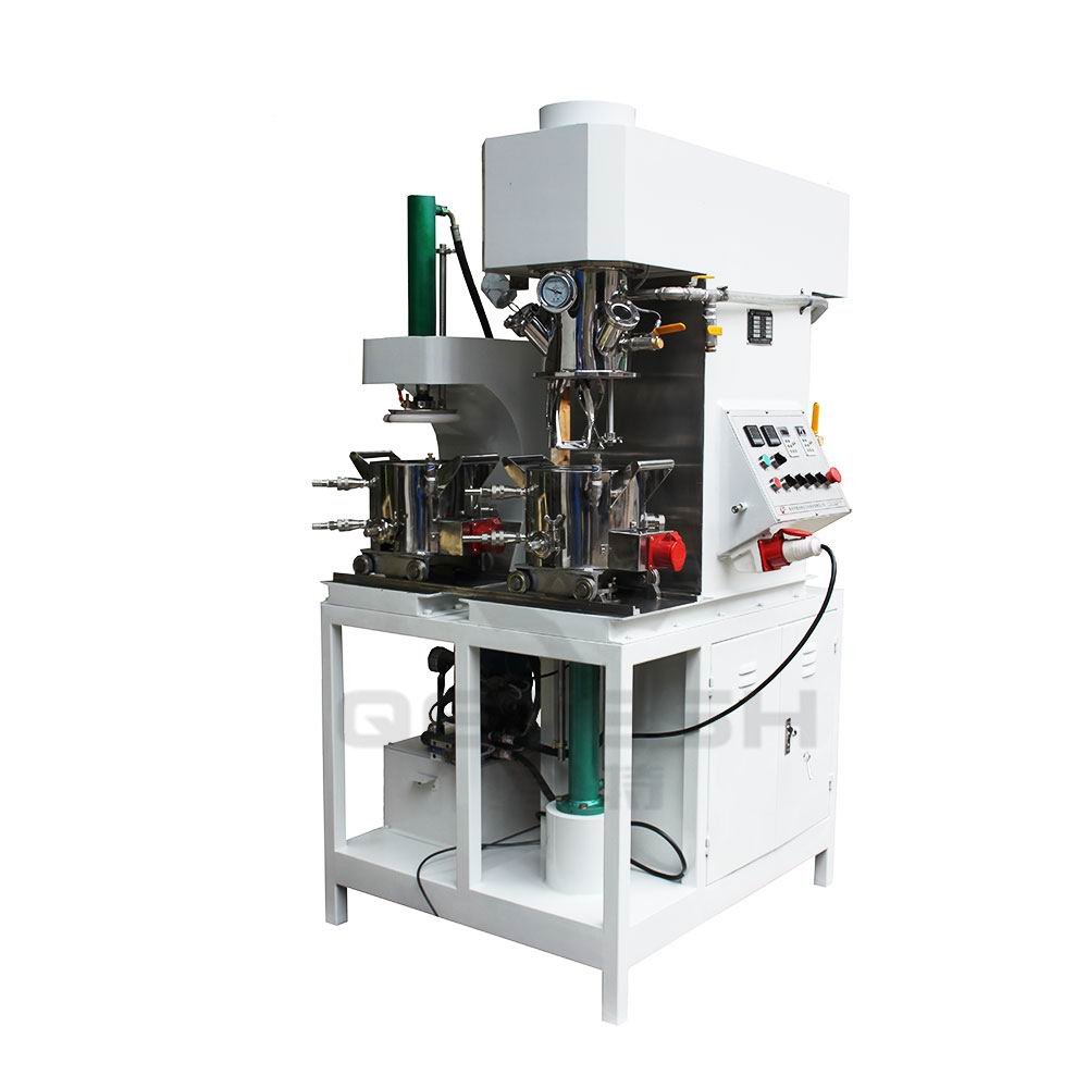 5、集成化高   预混、搅拌、周转、过滤诸环节无缝快拆式对接,与空气无接触。可PLC全自动控制,速度、温度、升降、真空系统,可集成在一张面板上控制。