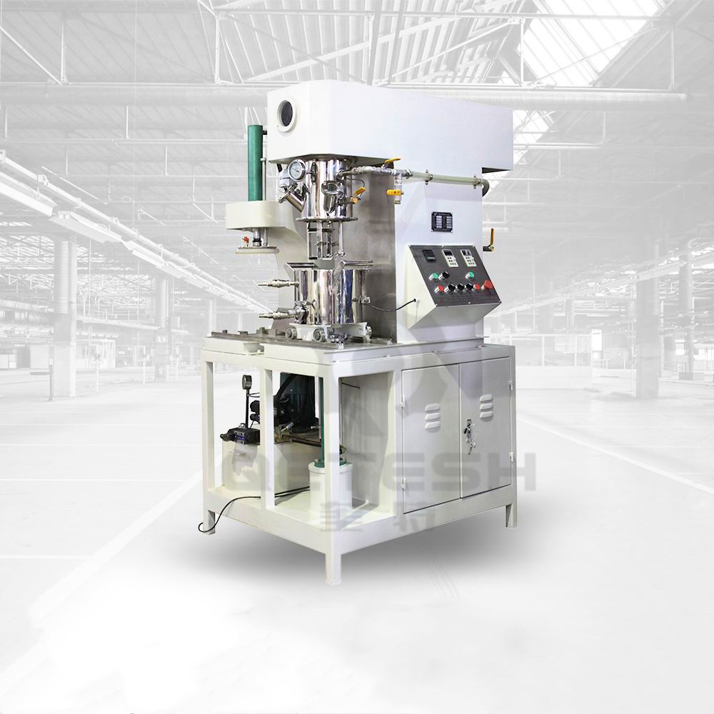 黄瓜视频官网动力混合机是一种新型且对多种混合液体、粉体进行搅拌、溶解、分散、均质的搅拌设备。该设备配有高速、低速、活动刮板部件,低速搅拌部件采用行星齿轮传动,搅拌桨在公转时也自转,使物料上下及四周运动,从而在较短的时间内达到理想的混合效果。高速分散/乳化部件与行星箱一起公转,同时高速自转,使物料受到强烈的剪切与分散混合,罐体内壁为大型立车精加工,再经大型抛光机自动抛光,确保行星箱上的活动刮刀在旋转时,把罐体内壁上的物料完全刮掉,其混合效果是普通混合机的几到几十倍。广泛应用于电池、有机硅胶、高端油墨、染料、粘胶剂、高端高粘度涂料等化工产品的生产。