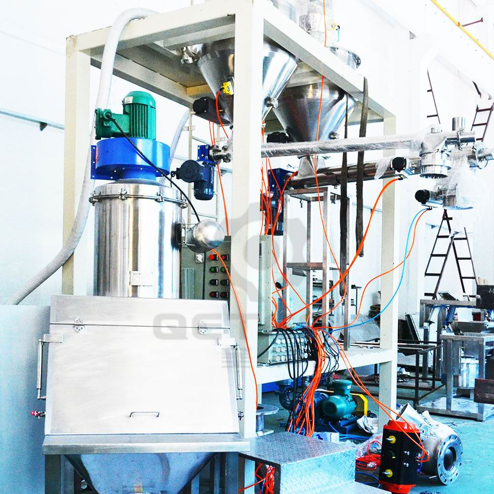 b) 无尘操作,实现全密闭开袋投料和管道输送;